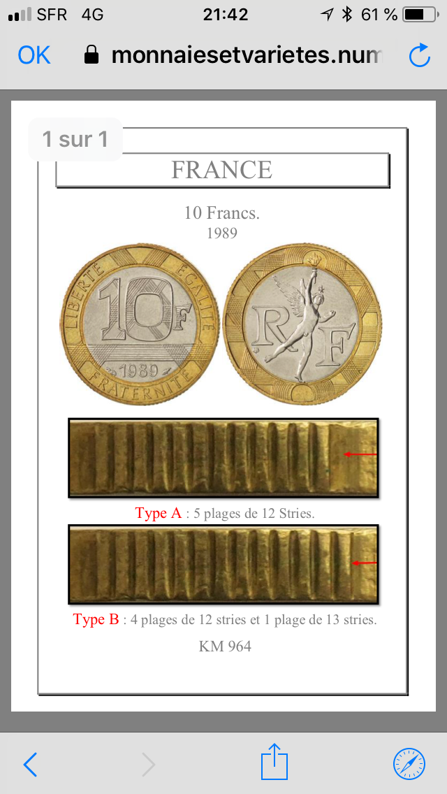 10 francs 1989 13 stries tranche A et B ma découverte validée du premier juin 2019