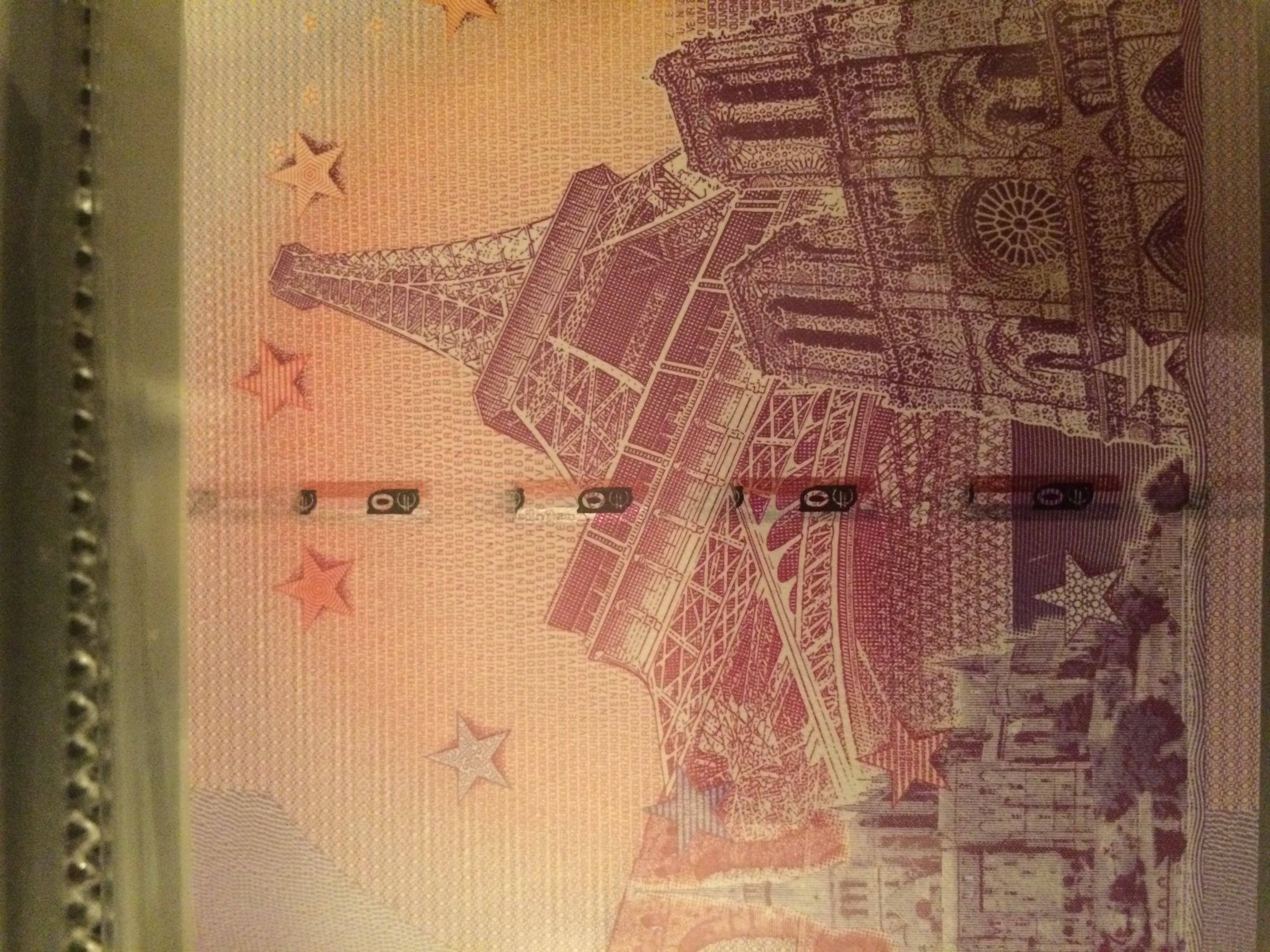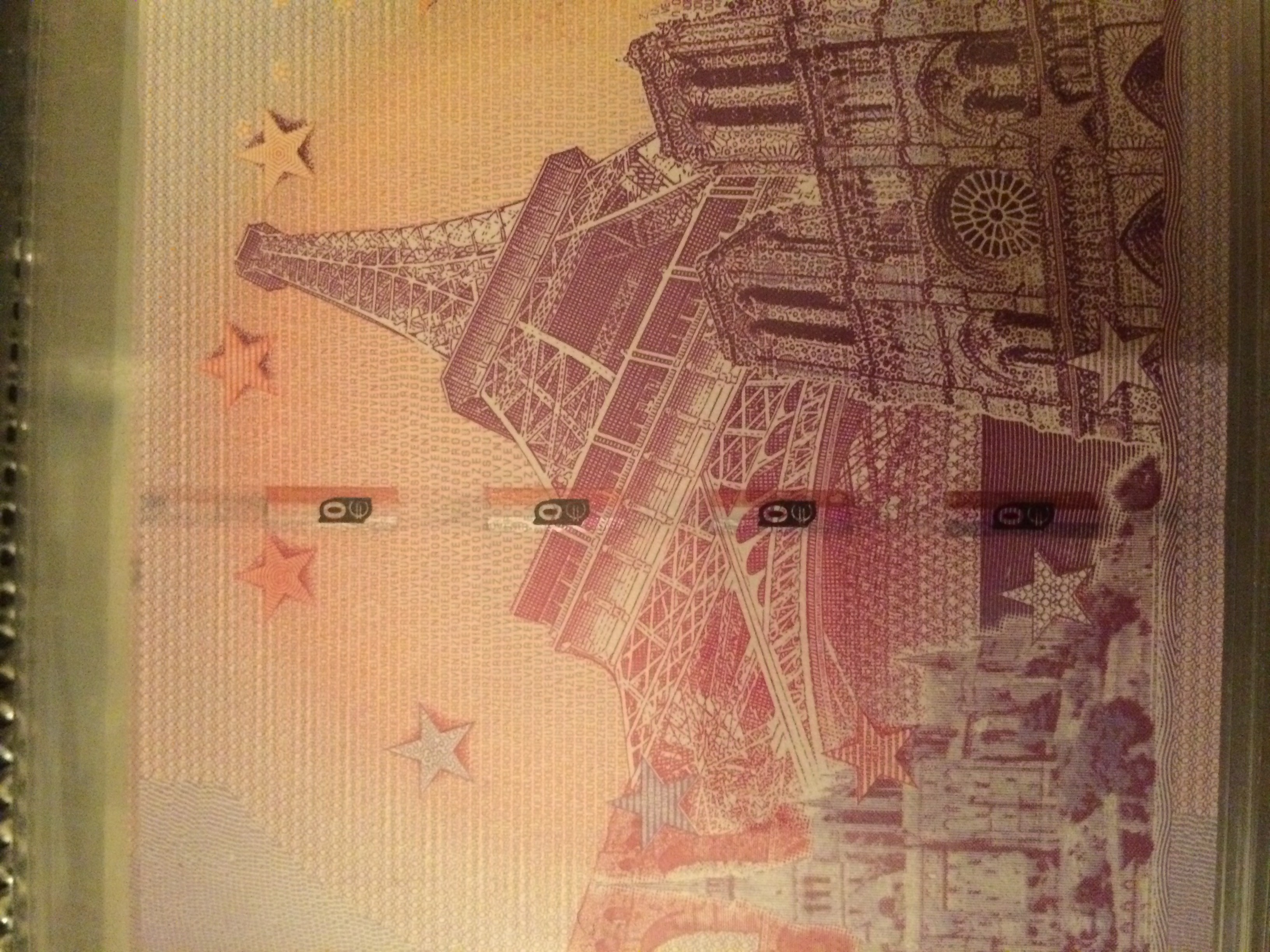 Il y a côté recto les étoiles cachées par le bâtiment ,en réalité il y a un décalage de l’image de 3 mm 1/2 .