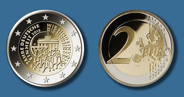 Le gouvernement fédéral a décidé, le 4 Juin 2014 d'émettre une pièce commémorative de 2 euros "25 ans d'unité allemande" en Janvier 2015. La pièce commémore la réunification de l'Allemagne, qui l'année prochaine marquera le 25e anniversaire.