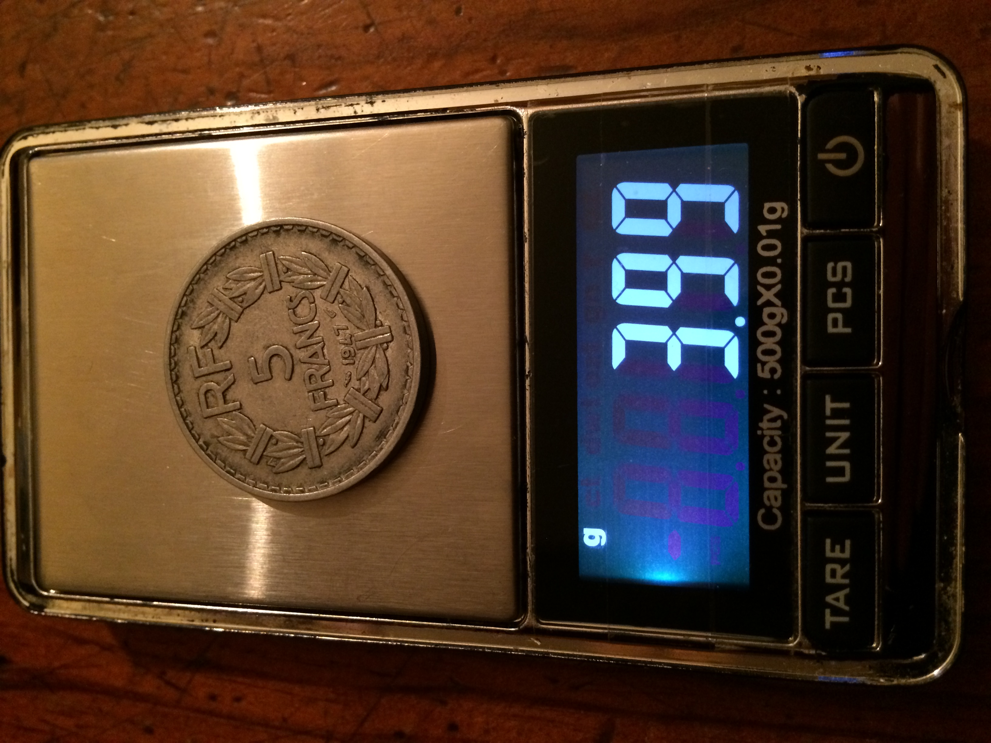Bonjour voici une pièce qui fait poser mille questions,5 Francs Lavrillier 1947 poids lourde ,flan épais ,