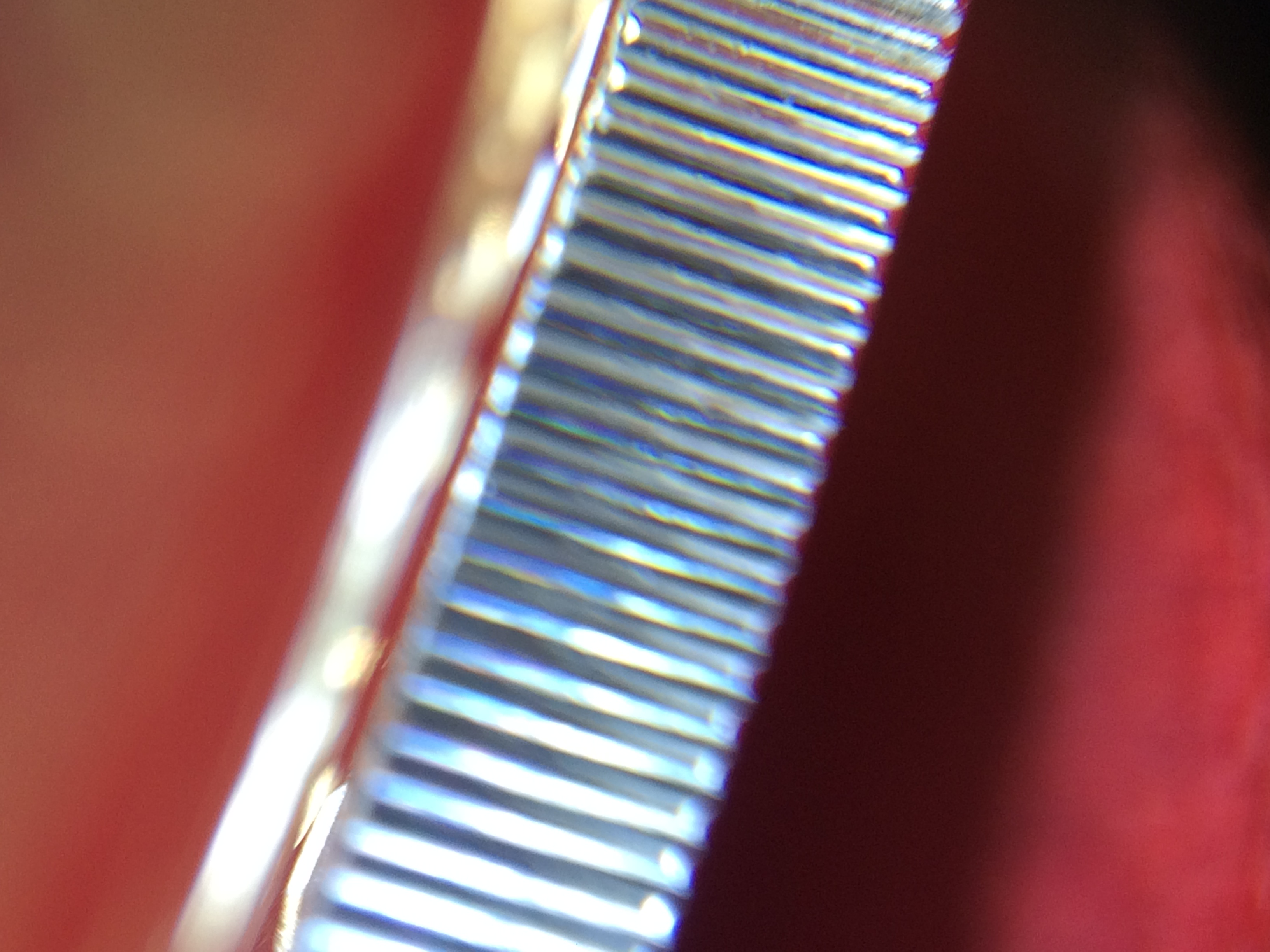 On voit bien à partir du dessous de 2010 sur la Tranche que les motifs sont pas graver et mal graver sur l’ensemble du tour de la tranche.