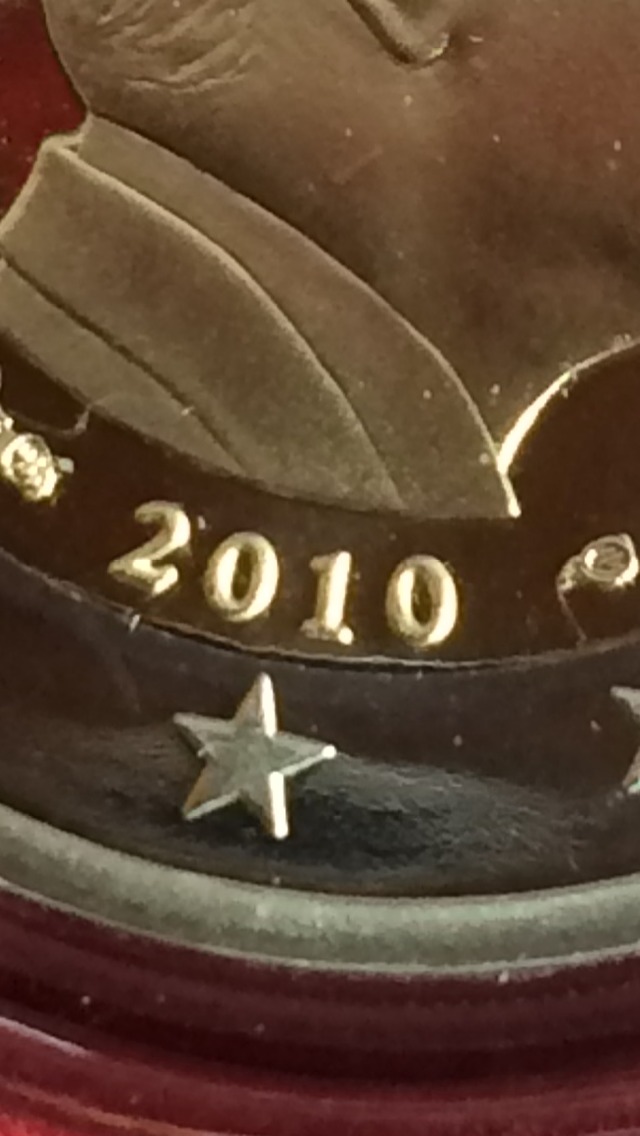 :?: petit jour entre l’etoile Du bas 6 heures côté avers et le 2010.le metal est comme Clippers.