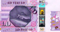 Ces billets marqués "LD TEST" et "HD TEST" ont été utilisés pour étudier de nouveaux signes de sécurité. Il y a eut 16 variétés prototypes suite à une recherche demandée par la BCE.