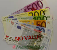 Les Billets Training Token marqués "NO VALUE" (par traduction : sans valeur) ont été fabriqués à 28 000 exemplaires avant la fabrication des euros afin qu'il soient testés par des non-voyants. Il s'agissait d'une sorte de prototype pour former les malvoyants. Ces billets ont été distribuées par l'état et prêtés pour une durée de quelques mois, puis récupérés pour être détruits. Si autant de billets ont pu être récupérées par l'état c'est parce que ces monnaies ont été fournis avec une lettre de décharge à signer qui engageait les organismes à les restituer.
