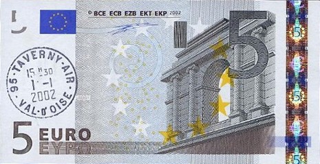A l'occasion du premier jour de circulation officielle des euros, ce billet à été oblitéré à la date du 01 Janvier 2002