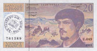 Il existe également son duo version Franc, avec ce billet de 20 Francs oblitéré au dernier jour de circulation :