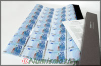 Les banques d'Allemagne et d'Autriche ont vendue environ 4000 feuilles complètes de billets d'euros non découpées. ces billets sont authentiques et peuvent même servir en tant que monnaies, mais bien sûr, le but ici est de collectionner ces feuilles entières.