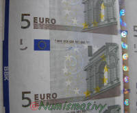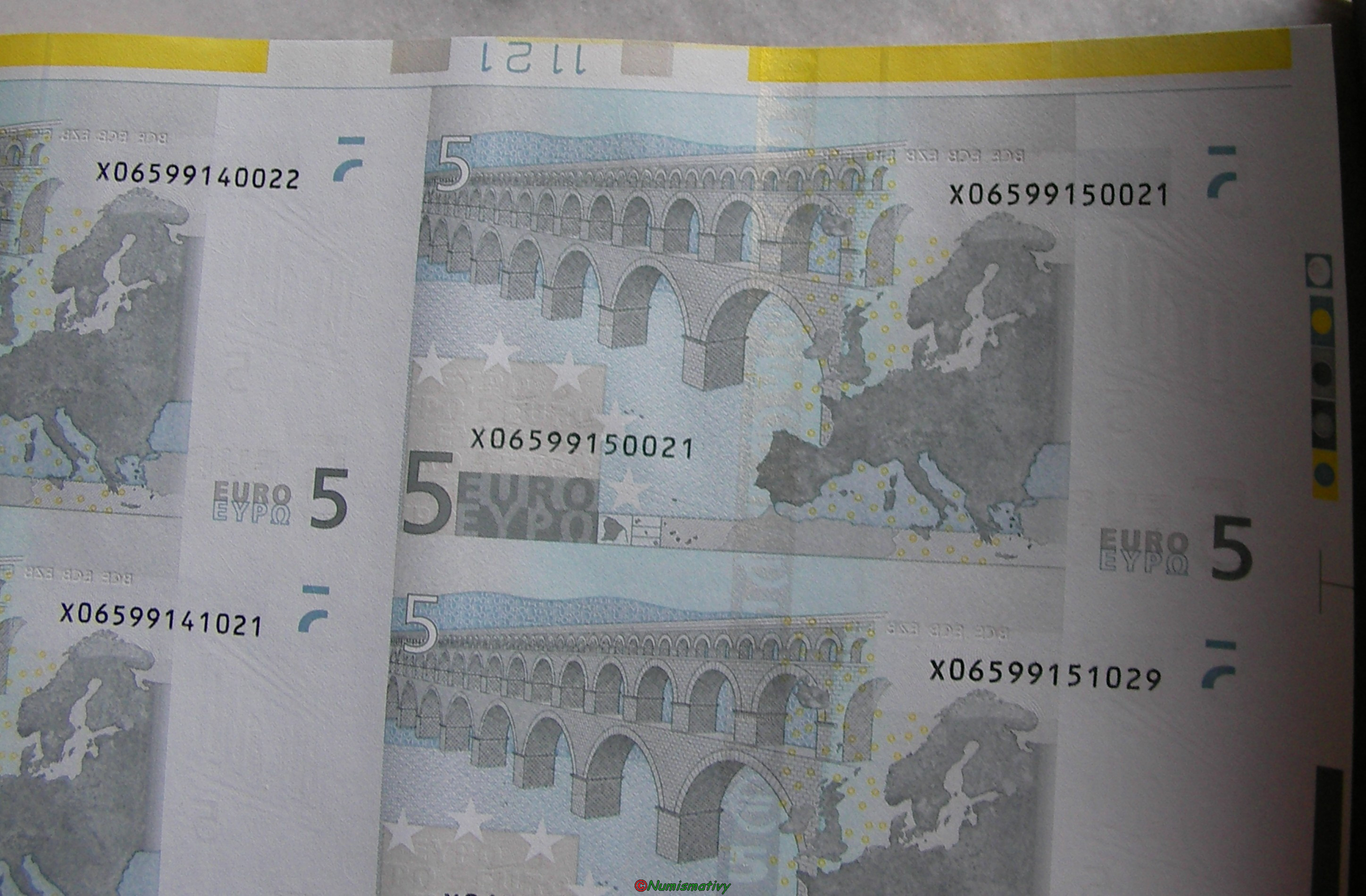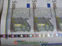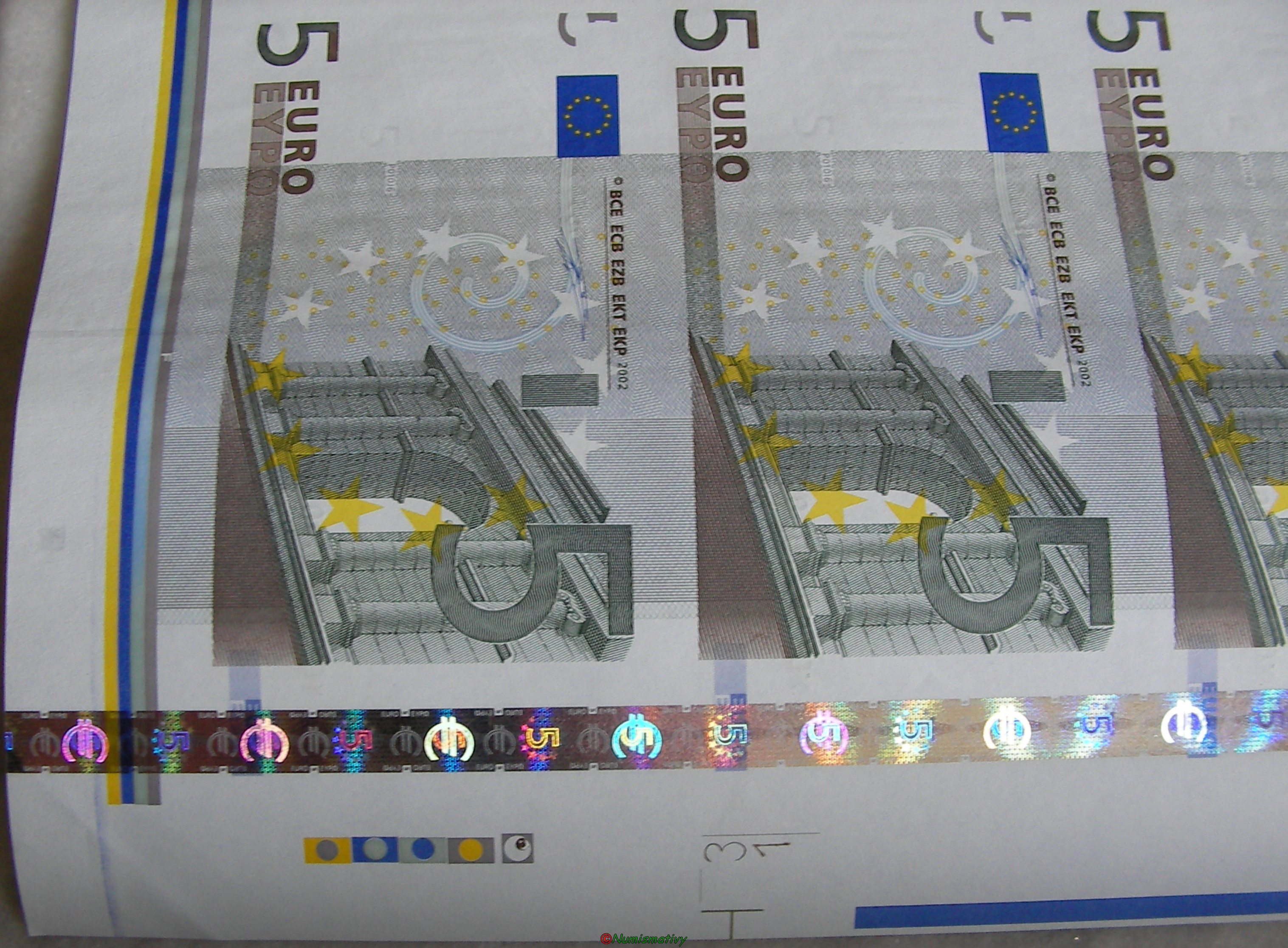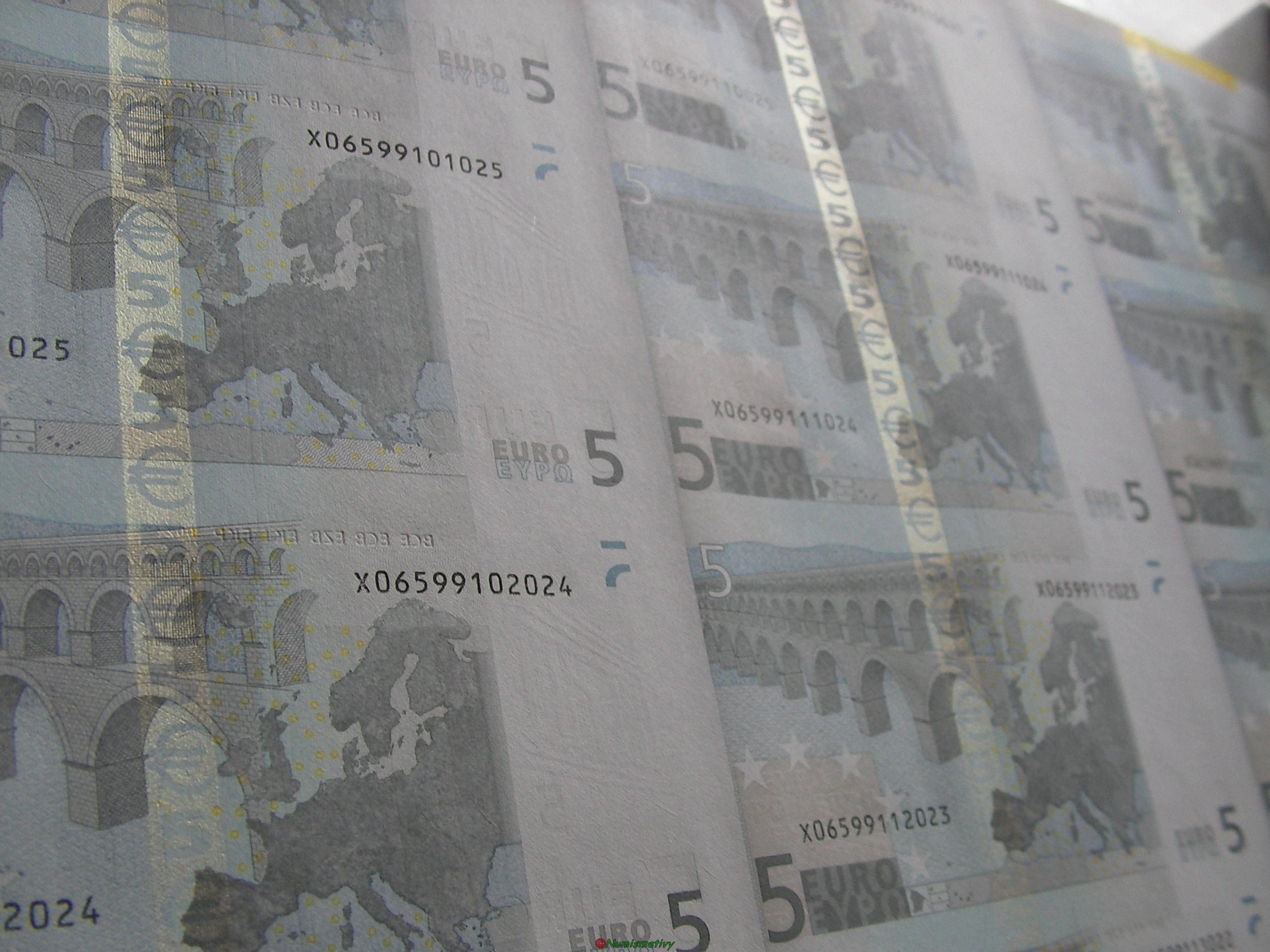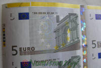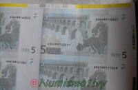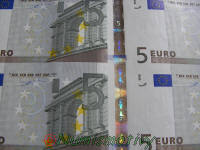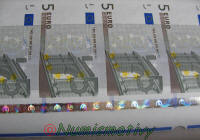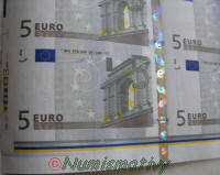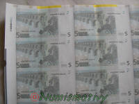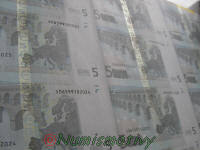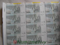 Détails d'une feuille de billets de 5 euros :