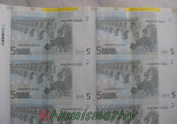 > Les planches de 5€ contiennent 60 billets (6 colonnes* 10 rangées, 74cm*66cm) et se vendaient à l'époque près de 600 euros.