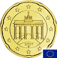 d'Allemagne : C'est un flan de 50cent d'euro frappé avec un coin coté pile de 50 cent d'euro, mais avec un coin coté face de 1euro. Du coup on retrouve un aigle à la place du temple sur cette pièce ! Très surprenant... [Pour en savoir plus cliquez ici...] |
