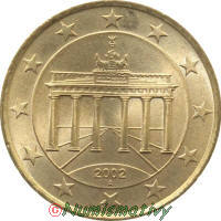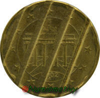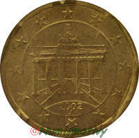 Afin que la légende (la devise allemande) passe sur la circonférence de ce flan de 2€ plus petit qu'une 5DM, la police de caractère est plus petite et il y a 1 seul symbole de l'aigle à la place des 6 sur la 5DM.