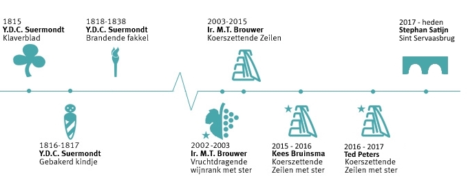 Dans l'histoire récente de la marque Mintmaster's Mark of the Royal Dutch Mint, trois marques Mintmaster's différentes ont été utilisées depuis 2003. Voiles de réglage de cap - Mintmaster Maarten Brouwer En 2003, le Mint Master MT Brouwer a choisi Koerszettende Zeilen comme signature personnelle. Les voiles symbolisent le navire 'Nederland', construit en 1893. L'arrière-grand-père de Brouwer était capitaine du dernier trois-mâts clipper battant pavillon néerlandais. Les voiles de réglage du cap représentent également la direction avant que la Royal Dutch Mint a toujours envisagée. La mise en route des voiles avec l'étoile - Maîtres de la Monnaie Kees Bruinsma et Ted Peters En 2015, Kees Bruinsma a succédé par intérim à Maarten Brouwer. Le Mintmaster Sign Koersetterende Zeilen a ensuite reçu une étoile. Les pièces en euros néerlandaises de 2015 et 2016 portent ce poinçon de maître de la monnaie par intérim. Toujours en 2017, sous Mintmaster Ted Peters, des pièces en euros néerlandaises ont été frappées avec ce signe Mintmaster par intérim. Sint Servaasbrug - Mintmaster Stephan Satijn En 2017, la transition vers une nouvelle enseigne Mintmaster s'est achevée avec la nomination de Mintmaster Stephan Satijn. Comme signe du Mintmaster, il a choisi le Sint Servaasbrug dans sa ville natale de Maastricht. Le pont symbolise d'une part le rôle du Mint Master en tant que constructeur de ponts et d'autre part le lien entre privé et public. Comme la Royal Dutch Mint, Maastricht a une histoire riche. En 1992, l'Union monétaire européenne (UEM) a été créée ici et les bases ont été posées pour l'introduction physique de l'euro le 1er janvier 2002.