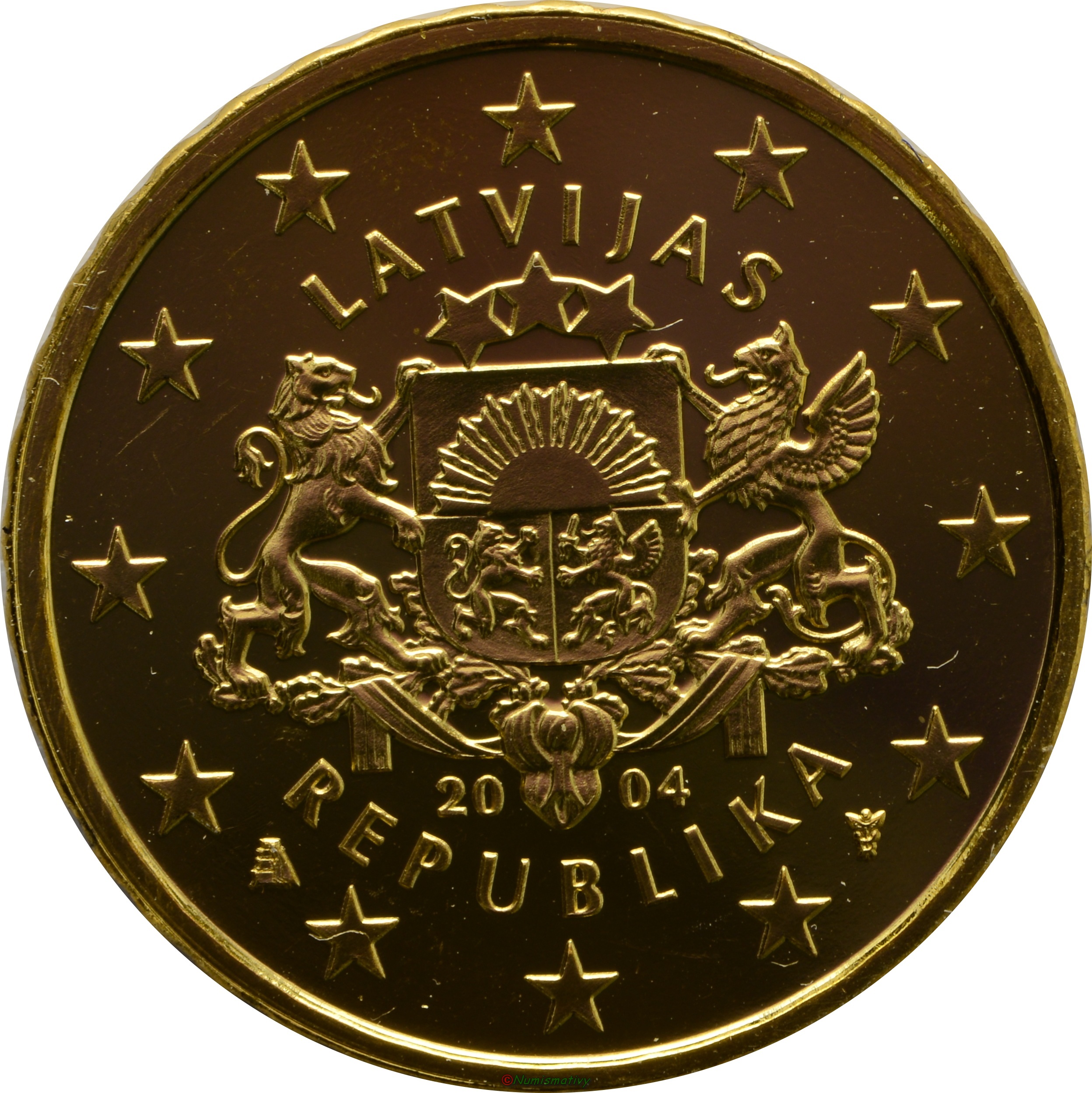 Voici un spécimen interessant de 10 cent euro de Lettonie daté de 2004, sauf que la Lettonie n'a utilisé la monnaie Euro qu'à partir de 2014...