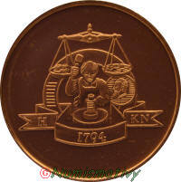 L'avers des huit pièces de monnaie montre l'insigne ou le logo de l'Hôtel des monnaies de Birmingham; un monnayeur étant sur le point de frapper une pièce de monnaie à la main, avec un balancier derrière. Avec l'inscription " H 1794 KN". |