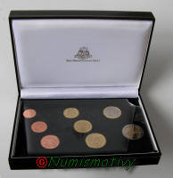 Voici le seul coffret que je connaisse, contenant la série complète avec presque les mêmes caractéristiques que la série précédement décrite, mis à part la tranche de la 2 euro.