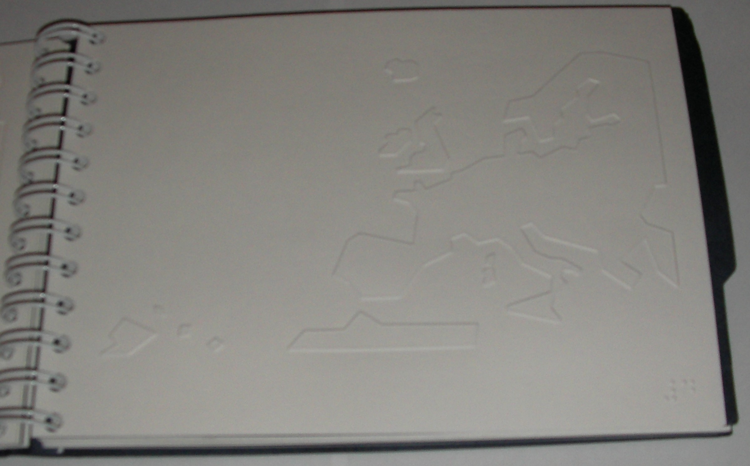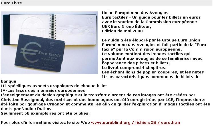 Ce guide "Euro-tactile" à des pages en relief et est écrit en