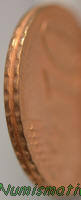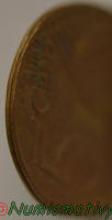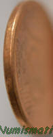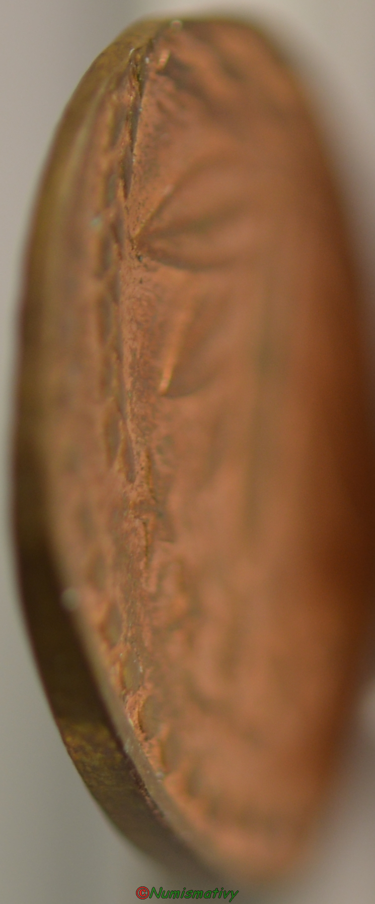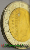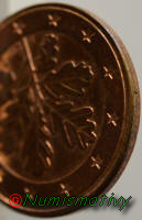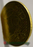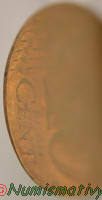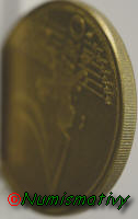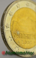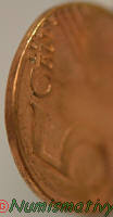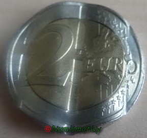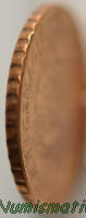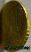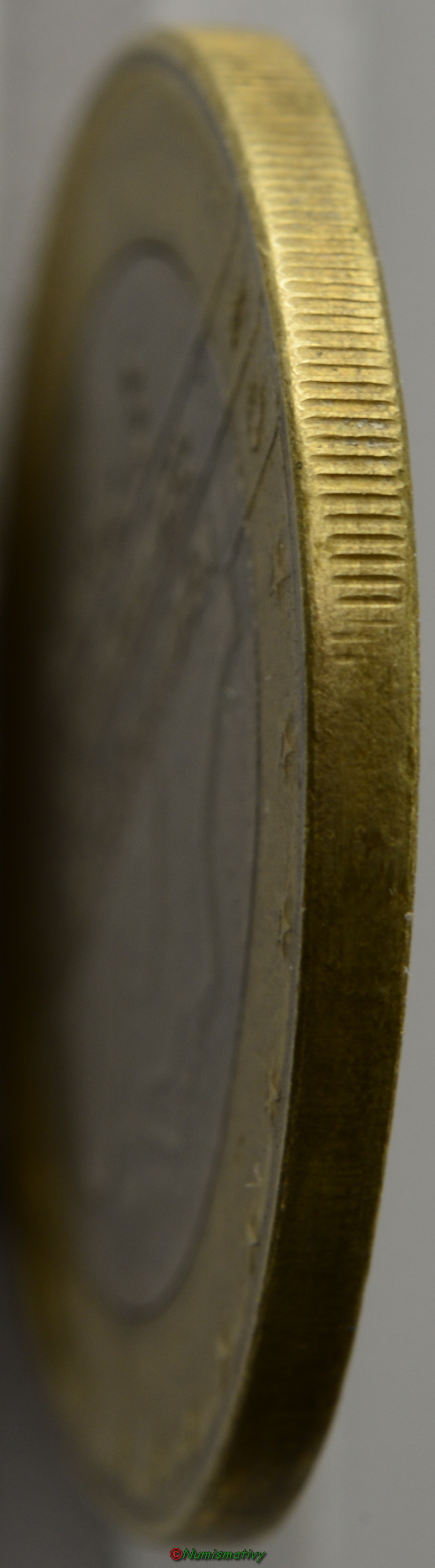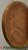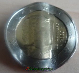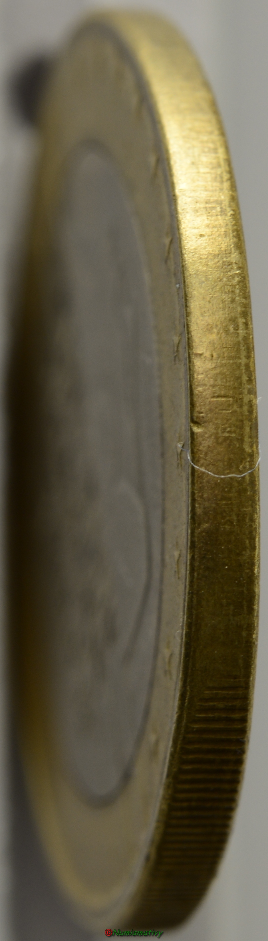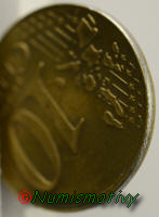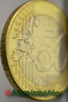 c) Pièce Euro frappée sur un flan destiné à recevoir la même valeur faciale euro, mais avec un flan mal préparé :