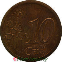 ALLEMAGNE Voici une belle 10cent 2003A Allemande frappée sur un flan de 2 Pfennig Allemand reconnaissable visuellement par le bandeau non cuivré de la tranche. Poids : 2.88g Flan : magnétique (acier cuivré) Cette pièce à la particularité d'etre doublement fauté : en plus c'est une hybride : car la face nationale comporte le visuel d'une 2cent€ !! |