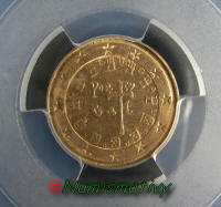 PORTUGAL En boitier certifié PCGS, voici une 1cent€ frappée sur un flan de 1 Escudos portugais Poids : 1.69g |