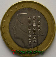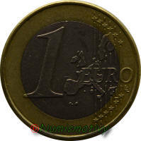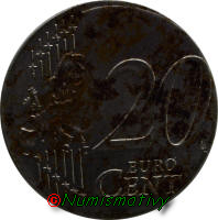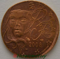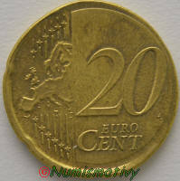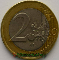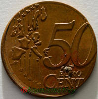 b) Pièce Euro frappée sur un flan destiné à recevoir la même valeur faciale euro, mais d'un autre pays de la zone euro :