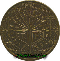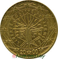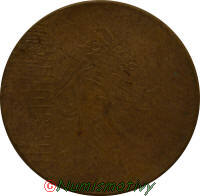 GRECE : Frappé sur un flan de 1Franc Français à l'époque la France avait obtenu le marché pour frapper les pièces de 50cent€ de Grèce. |