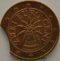 Euros fautés : Flans avec poinçonnage décalé (rognage / pièce clipée)