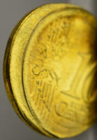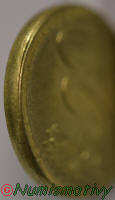 Il peut arriver de trouver des pièces dont la frappe est décalée par rapport au flan, en fait l'erreur vient du positionnement du flan lors de la frappe. Soit le flan est arrivé trop tôt soit trop tard, soit il s'est mal positionné dans son emplacement. Les décalages légers paraissent simplement inesthétiques tandis que les décalages de plus de 50% sont surprenants.