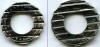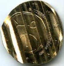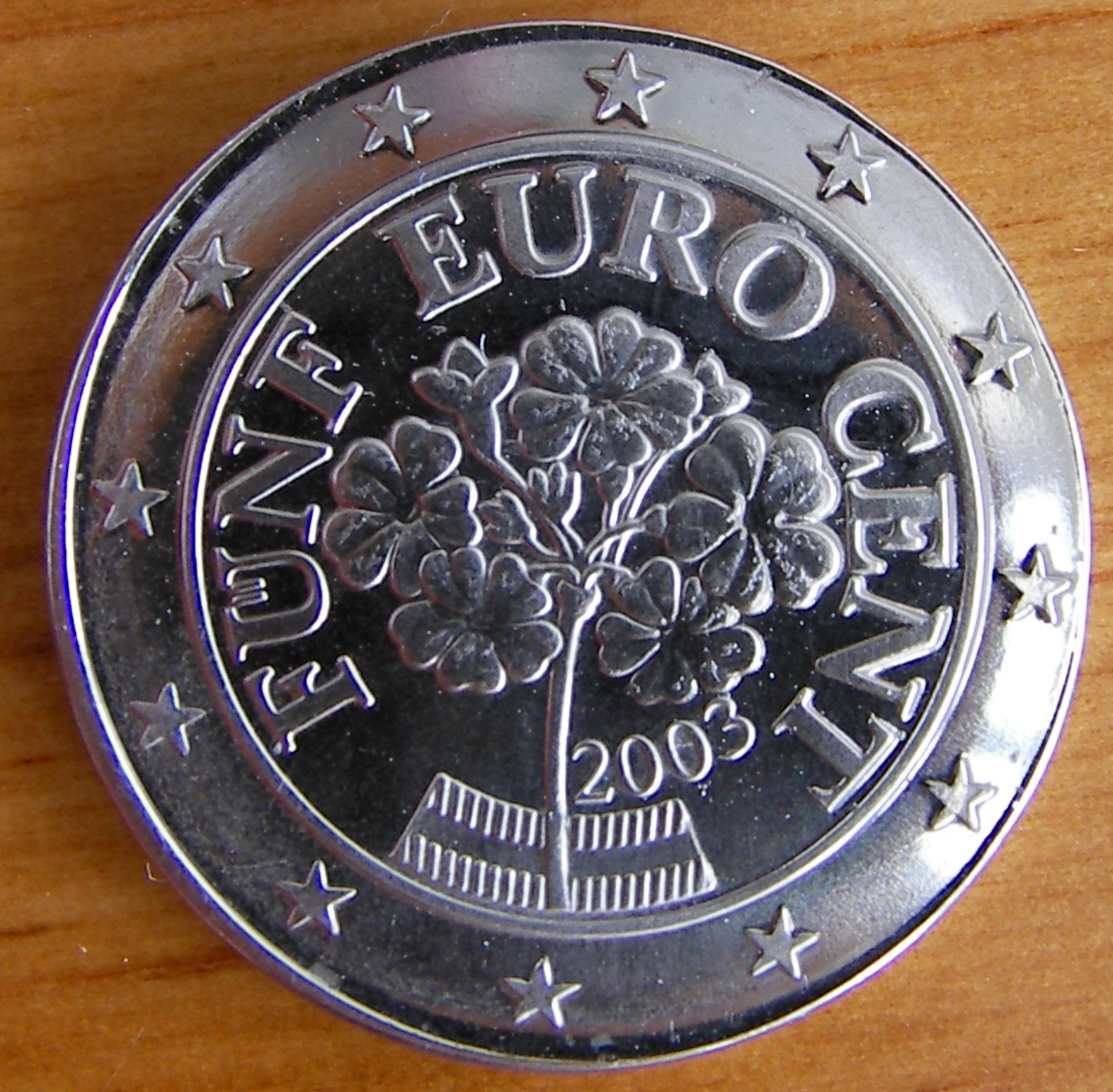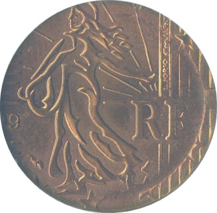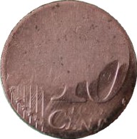 ![]() | Il peut arriver lors des transports entre les différents ateliers de la production qu'un flan de 5cent se retrouve par mégarde dans le bac des 10cent, on donc lors de l'approvisionnement pour la frappe, ce flan non adapté va recevoir l'empreinte d'une 10cent... Ce genre d'erreur donne parfois des résultats surprenants. | ![]() |