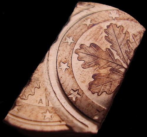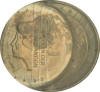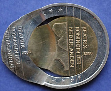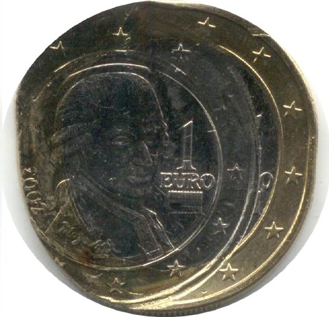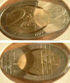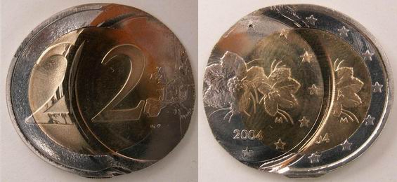 Suite à une mauvaise éjection ou insertion du flan frappé, il peut arriver que celui-ci soit refrappé une deuxième fois. Le flan s'étant mal repositionné, la seconde frappe est décalée par rapport à la première. Les résultats peuvent être impressionnants...