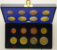 Coffret ![]() Non millésimé et vierge de toute frappe ces flans d'euro élégamment présentés dans un coffret ont été distribués aux autorités et aux journalistes à des fins de présentations avant le passage à l'euro. Ce coffret bleu est fabriqué par la marque "SACHER", mais les flans qu'il contient ont été fabriqués par "KME GROUP" ( https://www.kme.com/fr/produits_et_marches/industries_servies/monnaies/ ) Caractéristiques du contenu : 1cent : tranche lisse 2cent: tranche avec le sillon en creux 5cent: tranche lisse 10cent: tranche lisse 20cent: tranche lisse 50cent: tranche lisse 1euro: tranche lisse, le cœur à un sillon sur la tranche (insert non serti) 2euro: tranche lisse SANS inscription, le cœur à un sillon sur la tranche (insert non serti) Marques particulières: Les flans de 1cent à 50cent possèdent un début de perçage... 3 raisons sont possibles: > sorte de déformation pour éviter qu'ils ne servent de monnaies. > ajustage du poids pour qu'ils servent de gabarit, ou pour être conformes au poids théoriques. > permettre de voir la composition interne des pièces (particulièrement pour les flans d'acier cuivrés) [Raison la plus probable] Afin d'avoir davantage d'informations sur ce coffret j'ai contacté la société KME, et voici ce qu'ils ont répondu : "Il était un gadget préparé seulement en occasion du lancement de l’Euro en 2001 et il était destiné aux journalistes et aux autorités". Par contre ils n'ont pas de chiffre à fournir concernant le tirage... Impossible d'en savoir plus, il faudra donc trouver les informations dans d'éventuelles archives... |