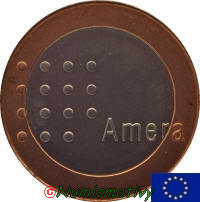 | 2 Euros AMERA : échantillons commerciaux de flans monétaires pour montrer leur savoir faire en fabrication de flans et en cuivrage ... . [Pour en savoir plus cliquez ici...] |
