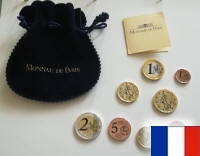 Paris : Joliement présentée dans sa bourse en velour, voici une série de 8 pièces en plastique réalisée à la demande de la Monnaie de Paris pour présenter les futurs Euros. [Pour en savoir plus cliquez ici...] |