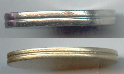 ![]() Les inserts disposent d'un sillon sur la tranche, de cette façon une fois serti le métal de la couronne vient remplir ce sillon qui l'empêchera de ressortir ![]() |