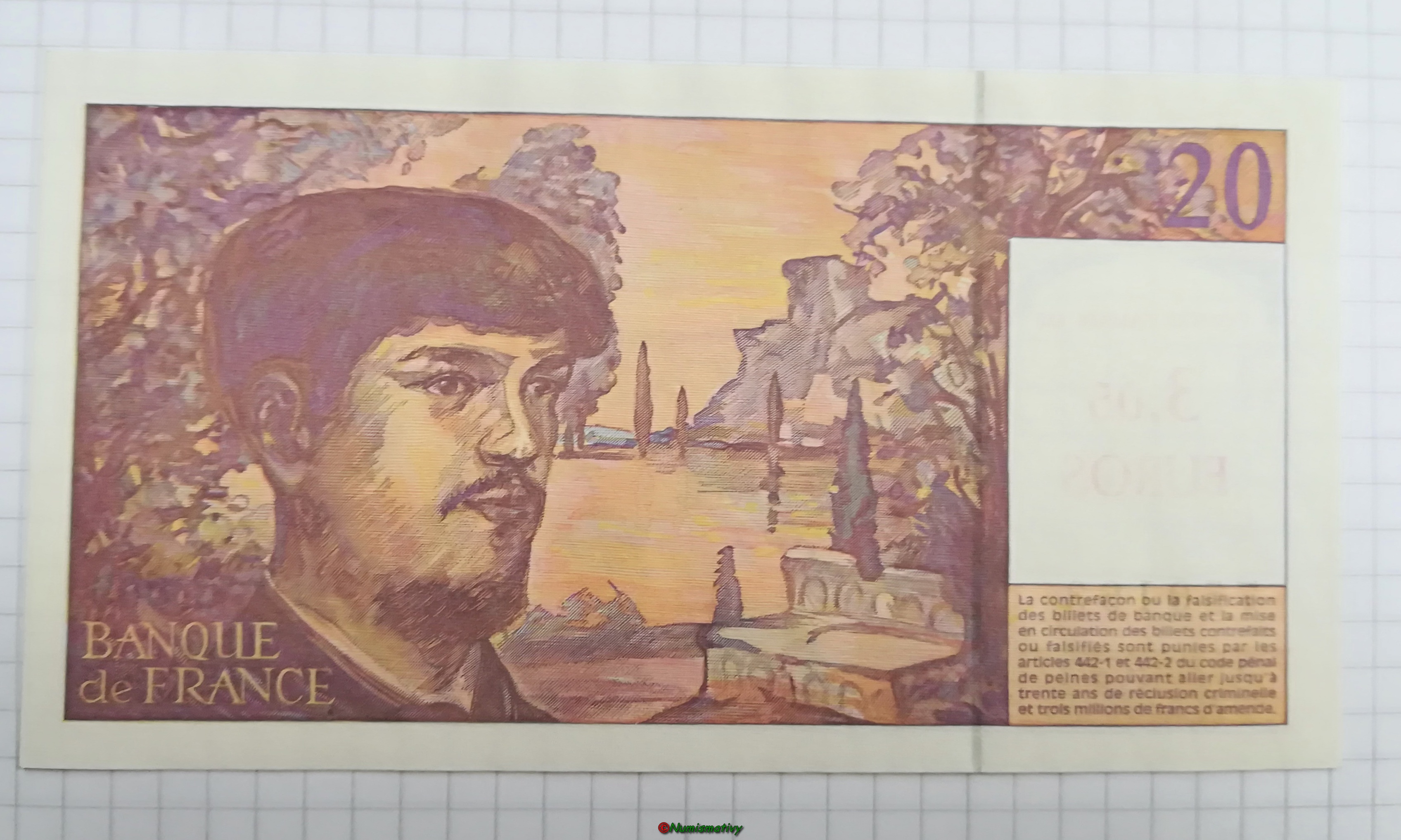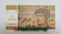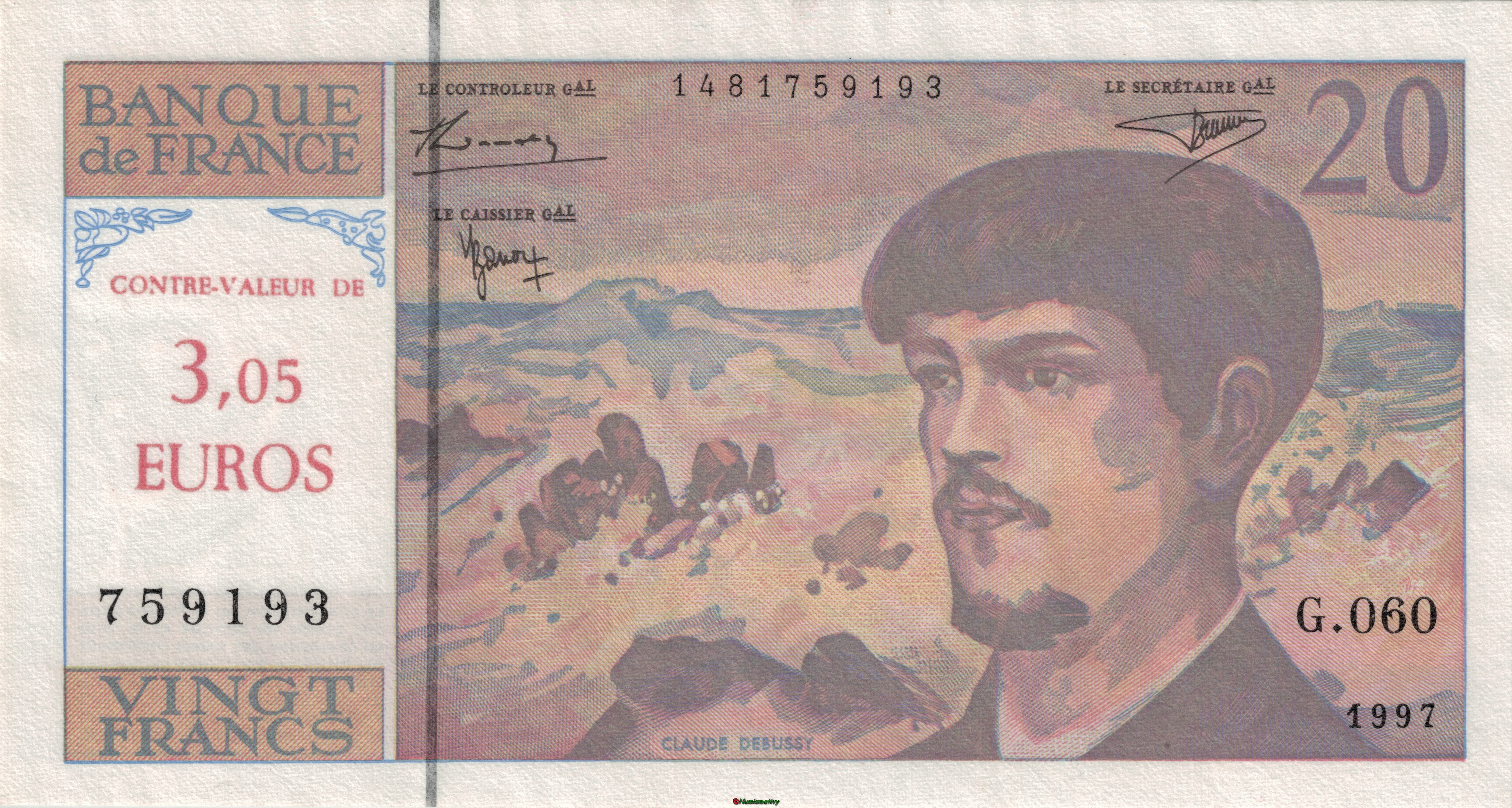 LE 20 Francs Debussy avec surcharge de sa correspondance en EURO : 3.05€