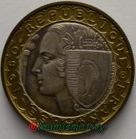 Rarissime essai du concours de 1950 de Bazor, mais en Bimétallique, la version monométallique à été recensée à 50 exemplaires, mais celui-ci est nettement plus rare (1 seul exemplaire déclaré dans le Gadoury).