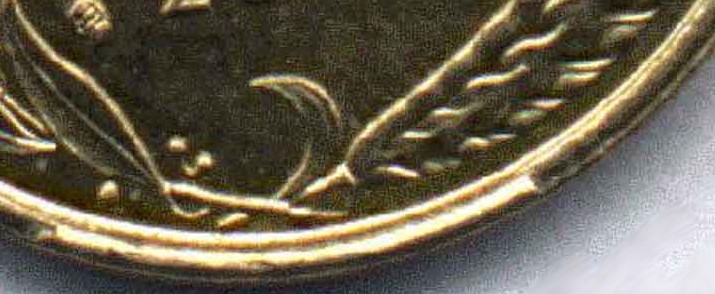 Les coins sont fabriqués dans un métal très résistant, mais ne sont cependant pas incassables ! Lorsqu'un coin perd un morceau de métal ou se fissure, l'empreinte qu'il laissera sur la pièce ainsi frappée aura un défaut plus ou moins important. Alors qu'avec un coin bouché il manquera des détails sur la monnaie, le coin cassé lui laissera un surplus de métal sur la monnaie parfois insignifiant, parfois surprenant ... |