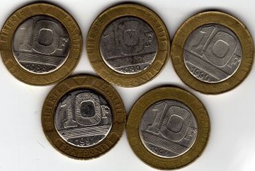| 10 Frs Génie | 1988 | ![]() Sur cette fausse pièce on peut voir une fissure du coté face. |