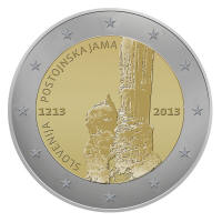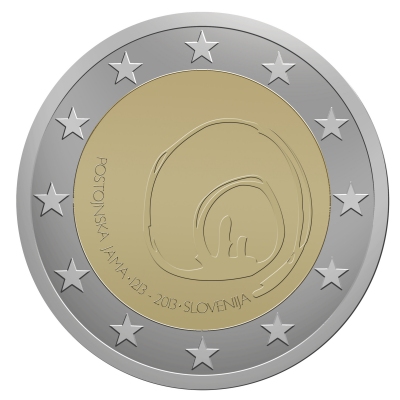 En Février 2012, la Banque de Slovénie a organisé un concours public pour la conception pièce de 2 € commémorative qui sera publié en 2013, avec des entrées anonymes.À la date de clôture du concours du 17 Mars 2012, elle avait reçu 52 dessins pour la pièce commémorative - 800e anniversaire de la première visite de la grotte de Postojna.