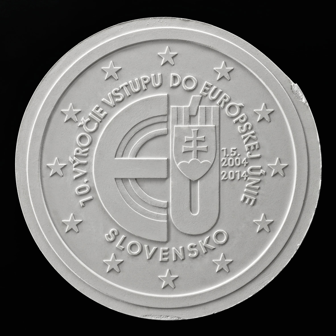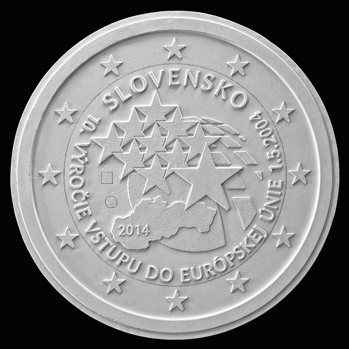 Le 1er mai 2004, l'Union européenne a connu un élargissement massif avec l'adhésion de dix nouveaux États membres, dont la Slovaquie. La Národná banka Slovenska prépare l'émission d'une pièce commémorative de 2 euros pour marquer le 10e anniversaire de l'adhésion de la Slovaquie à l'Union européenne. En avril 2013, elle a annoncé un concours public anonyme pour le dessin de la face nationale de la pièce.