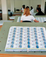Découpe des feuilles en billets :