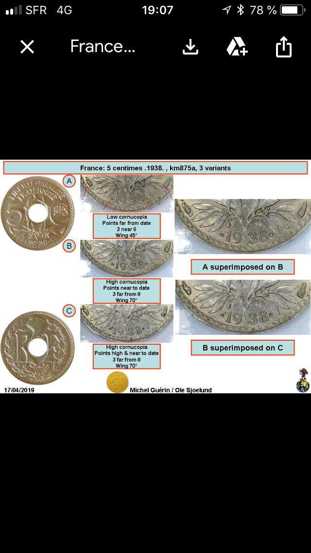 Donc on garde l’hypothèse de la variante, vu que monsieur Ole Sjoelund m’a montre un exemple d’une pièce de 1938 variante,voir photo,le décalage est exactement le même que sur l’image superposer de la 1938.
