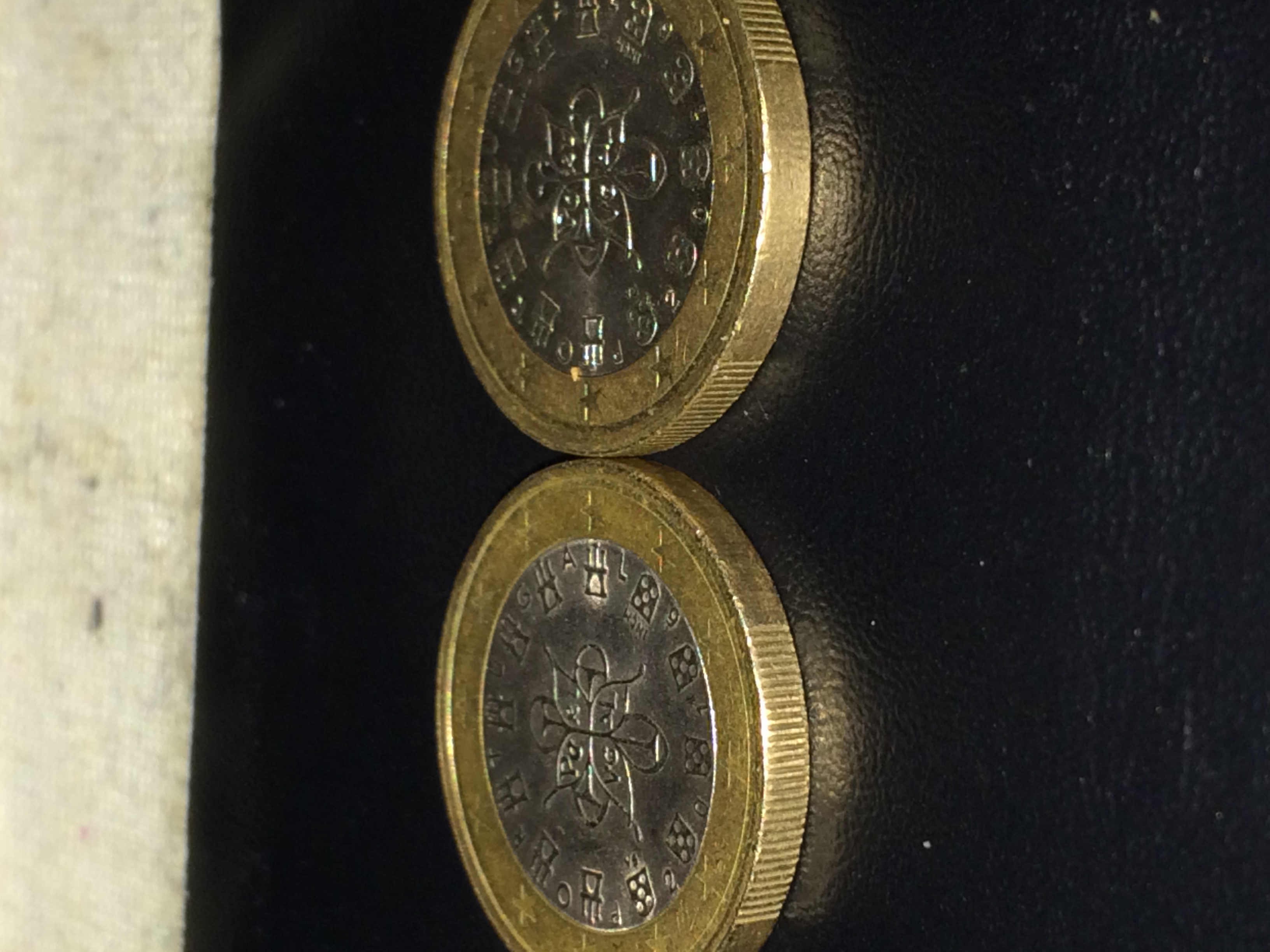 bonjour petite question est ce normal d’avoir ce type de tranche opposé pour ces deux pièces de 1€ 2016 Portugal.en effet ,lorsque je superpose les pièces droite ensemble de façon à ce que les gravures soit l’une sur l’autre en face.on voit les cannelures qui sont à l’oposé comme les cases d’un jeu de dame..