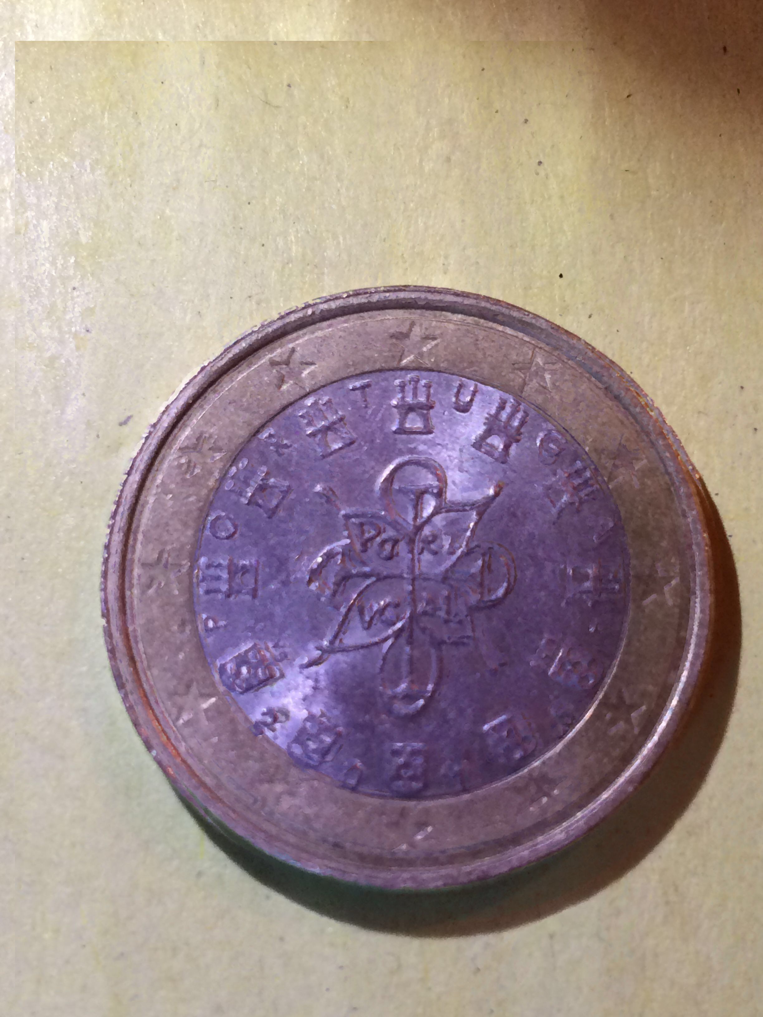 Voici les photos de la frappe faible par rapport à l’autre 1€ 2016 Portugal.Elle possède également un double Listel revers et avers à moins de .2mm de la Tranche,ce qui en fait une Fauté,car il paraît que si le double Listel est à + de 3mm c’est sûrement la machine à rouleau..