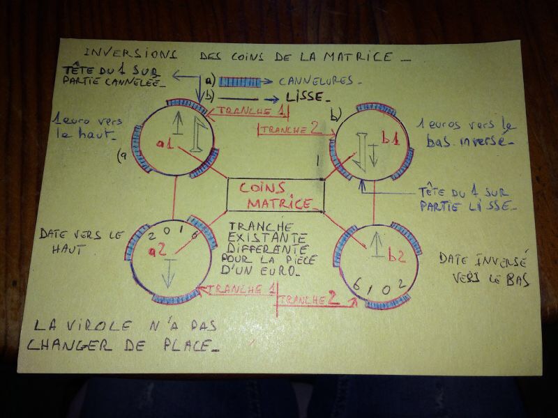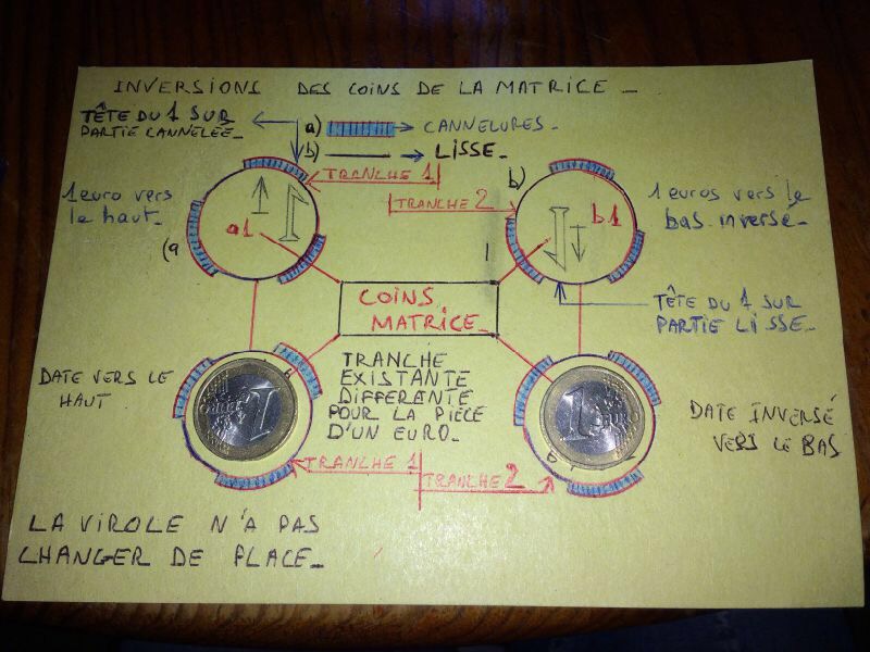chèr numismativy vous avez dû remarquer sur vos 5 pièce de 1 ,c’est soit la cannelure en haut d’un 1 ,soit la Tranche lisse au bout du 1...