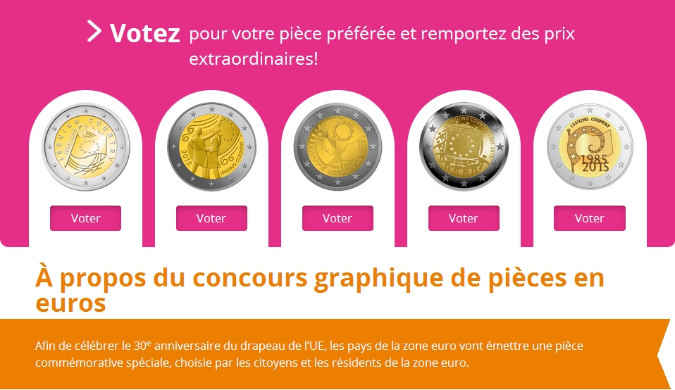 Nous pouvons voter pour choisir la future pièce de 2€ des 30 ans du drapeau de l'UE.