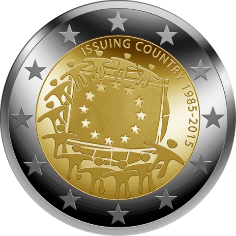 En juin 2015, cela fera 30 ans que le Conseil européen a adopté le drapeau européen comme emblème officiel et 60 ans depuis son adoption par le Conseil de l’Europe. Pour célébrer cet événement, les 19 États membres de la zone euro émettront une pièce commémorative au second semestre 2015 qui portera un symbole commun du côté national.