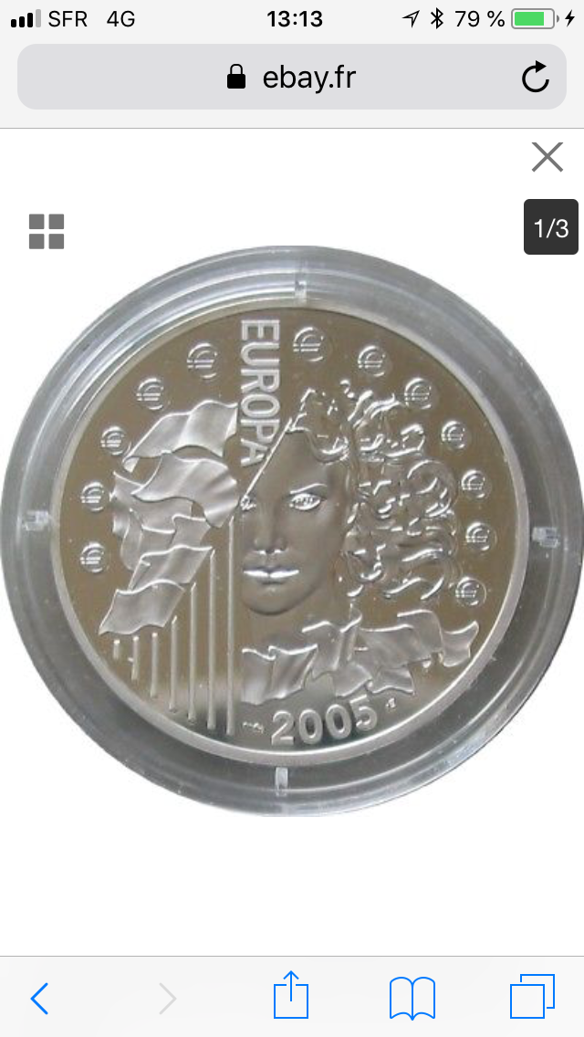 Bonjour je vous presente cette piece en argent de 1.1/2 euro France Europe 2005 Fauté.