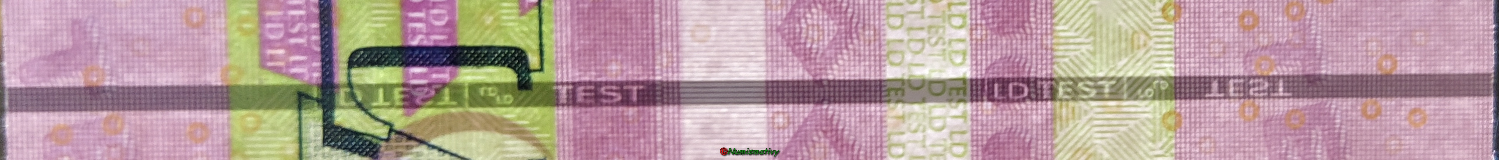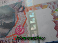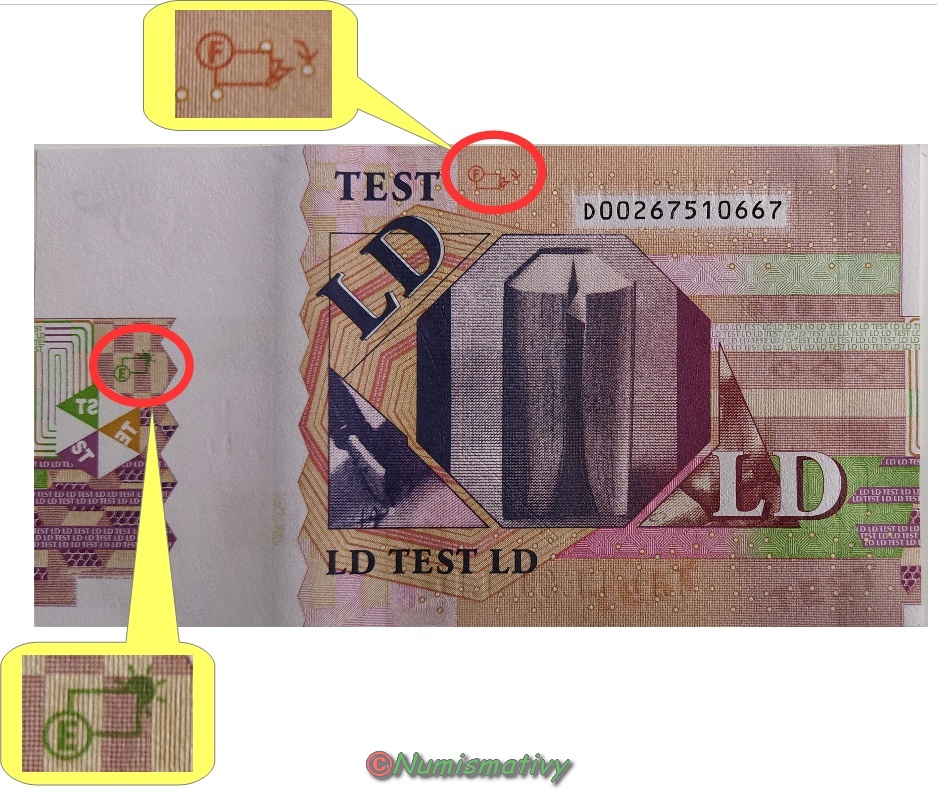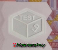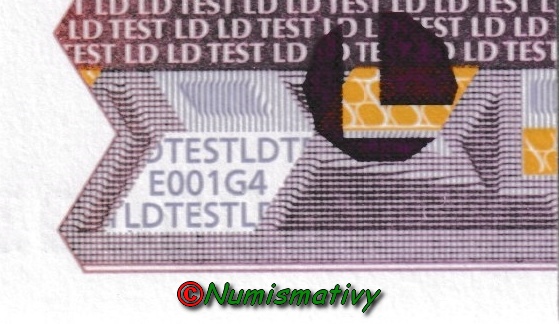 Ces billets marqués "LD TEST" et "HD TEST" ont été utilisés pour étudier de nouveaux signes de sécurité. Il y a eut 16 variétés prototypes suite à une recherche demandée par la BCE.