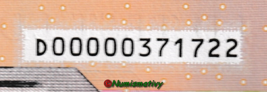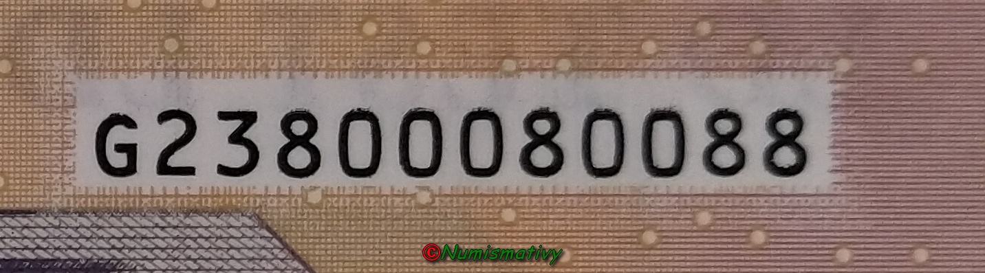 Ainsi sur notre image, le code E001G4, à été imprimé par l'Imprimeur "La banque de France", à Chamalère, en France, avec la plaque N°001, et ce billet est situé sur la colonne G (donc la 7ème) et sur la 4ème ligne dans la feuille.