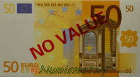 Les Billets Training Token marqués "NO VALUE" (par traduction : sans valeur) ont été fabriqués à 28 000 exemplaires avant la fabrication des euros afin qu'il soient testés par des non-voyants. Il s'agissait d'une sorte de prototype pour former les malvoyants. Ces billets ont été distribuées par l'état et prêtés pour une durée de quelques mois, puis récupérés pour être détruits. Si autant de billets ont pu être récupérées par l'état c'est parce que ces monnaies ont été fournis avec une lettre de décharge à signer qui engageait les organismes à les restituer.